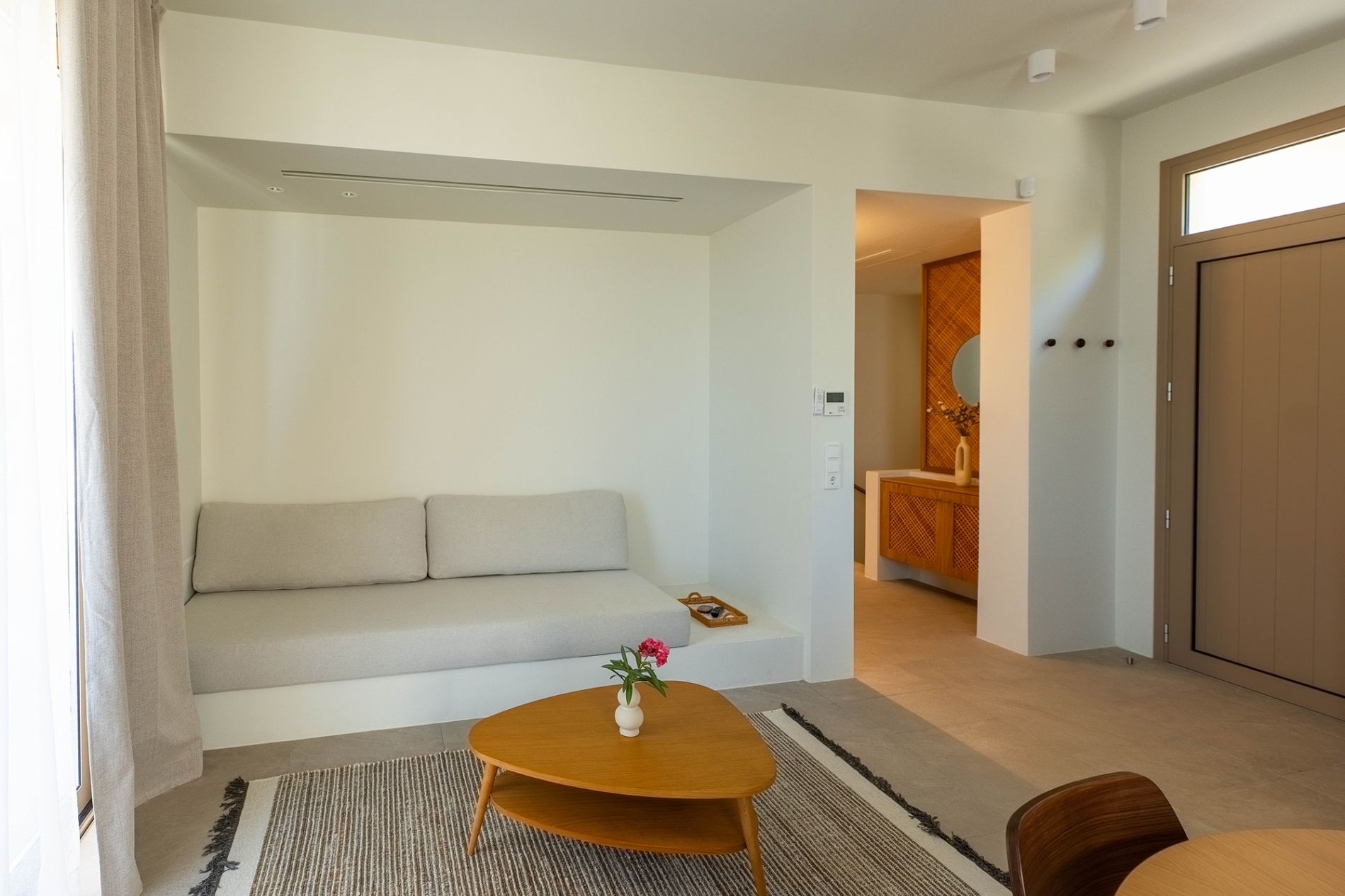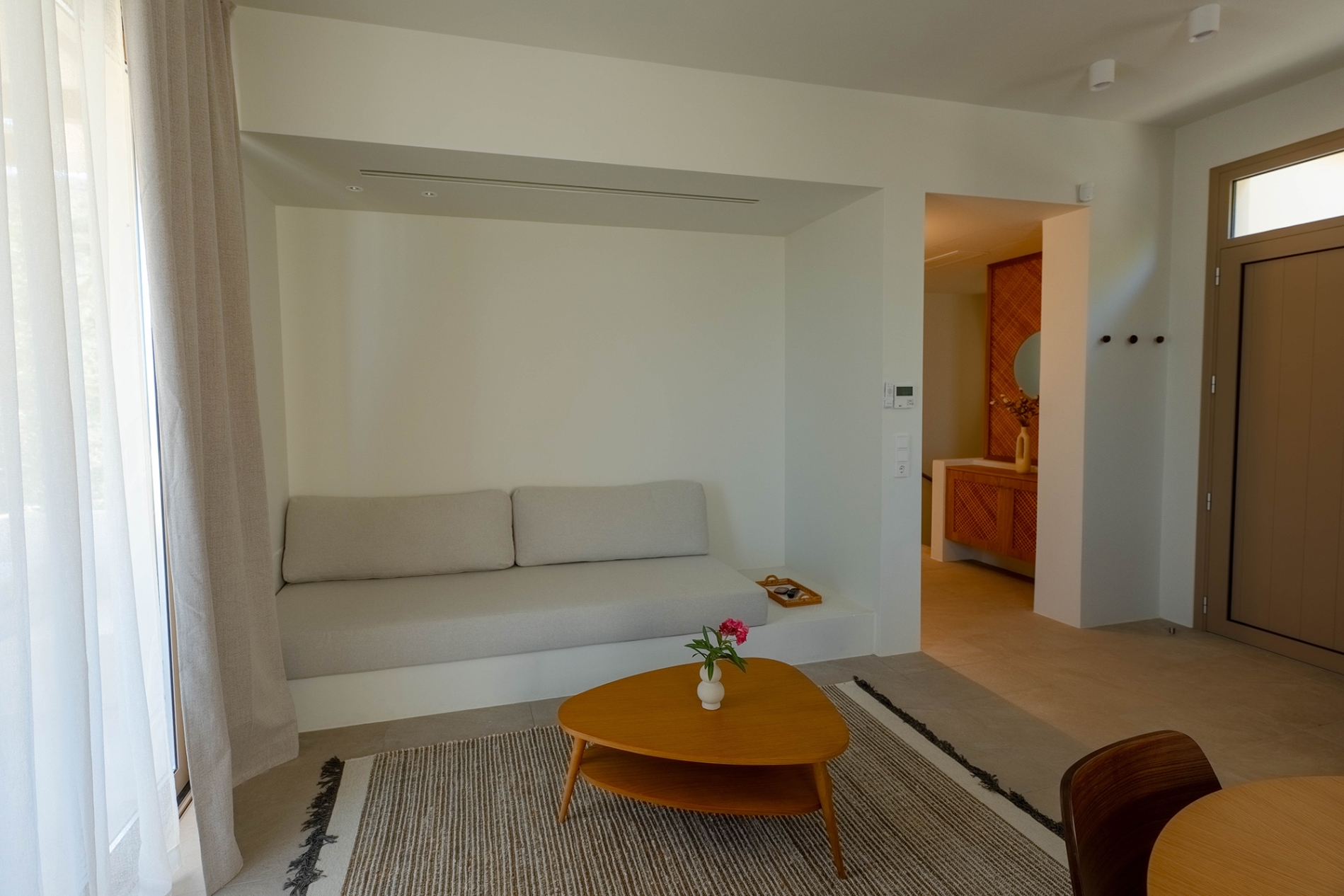 77 τ.μ. 6 άτομα 2 διπλά κρεβάτια, ένας καναπές-κρεβάτι και ένας εντοιχισμένος καναπές