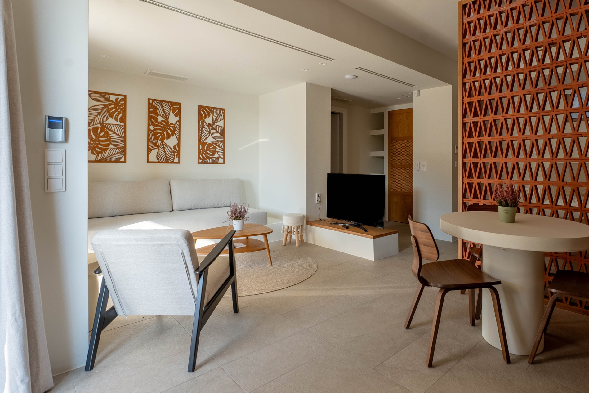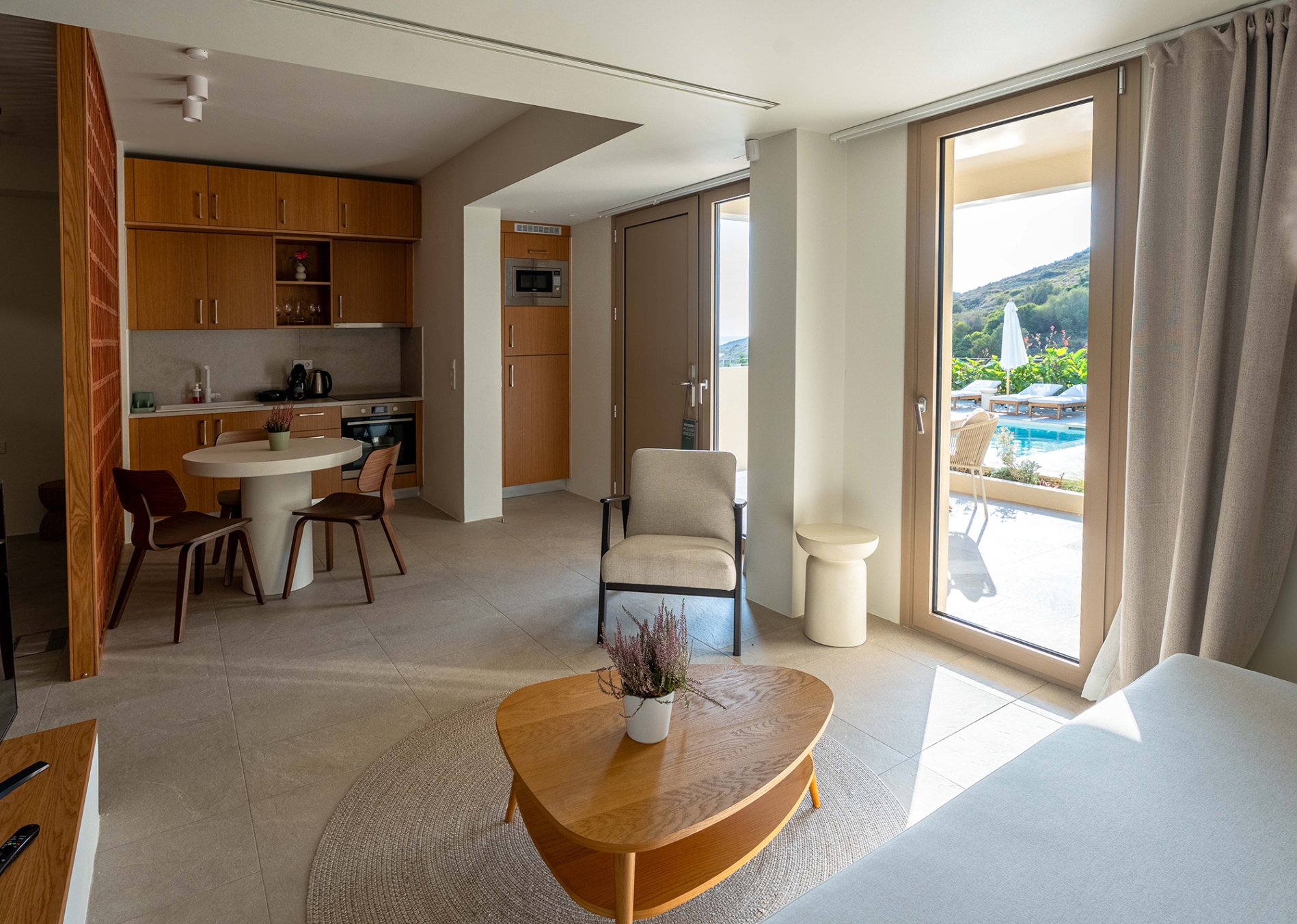 To Oleander Evia 2.0 είναι ένα ισόγειο στούντιο 40 τ.μ. κι έχει άμεση πρόσβαση στην πισίνα και τον κήπο. Περιλαμβάνει ενιαίο χώρο κουζίνας με τραπεζαρία - καθιστικού με μεγάλο χτιστό καναπέ πλάτους 100 εκ. , μήκους 280εκ., ένα διπλο κρεβάτι, ντουλάπες και ένα λουτρό με ντουζιέρα. Διαθέτει τραπεζαρία βεράντας με θέα πισίνα και πλευρική θέα θάλασσα.